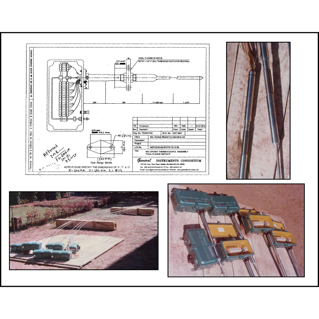 Where space limitations and cost consideration are of prime importance, multi-point thermocouple assemblies come into picture which is used for measuring and controlling the temperature in a reactor having different temperature zones Any thermocouple assembly with measuring junctions located at more than a one-immersion depth is commonly referred to as a multi-point. As the number of variations possible in multi-point assemblies is virtually limitless they are Thermally designed and manufactured to meet the requirements of individual applications. As different multipoint designs vary tremendously, careful consideration should be given to such variables as the positive location of measuring junctions and the ease/cost of replacement